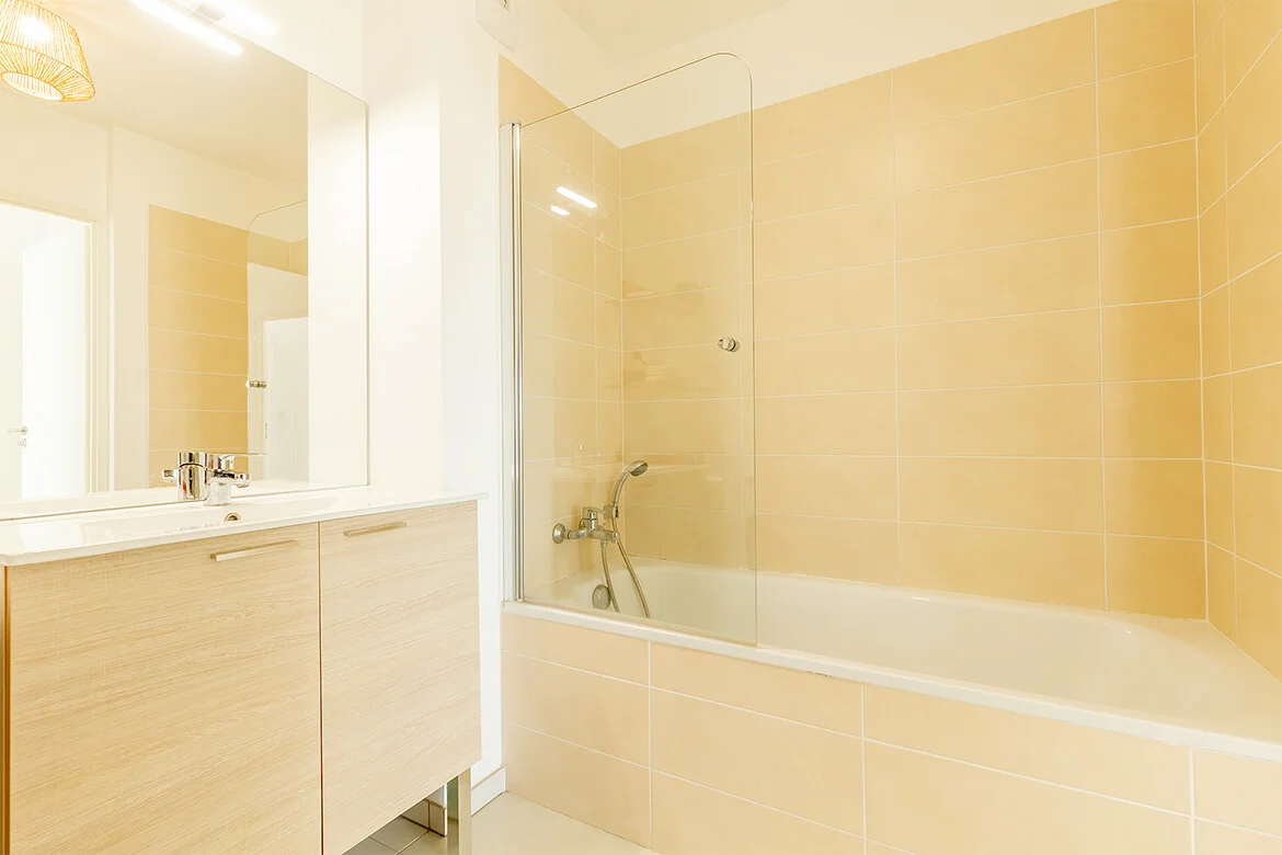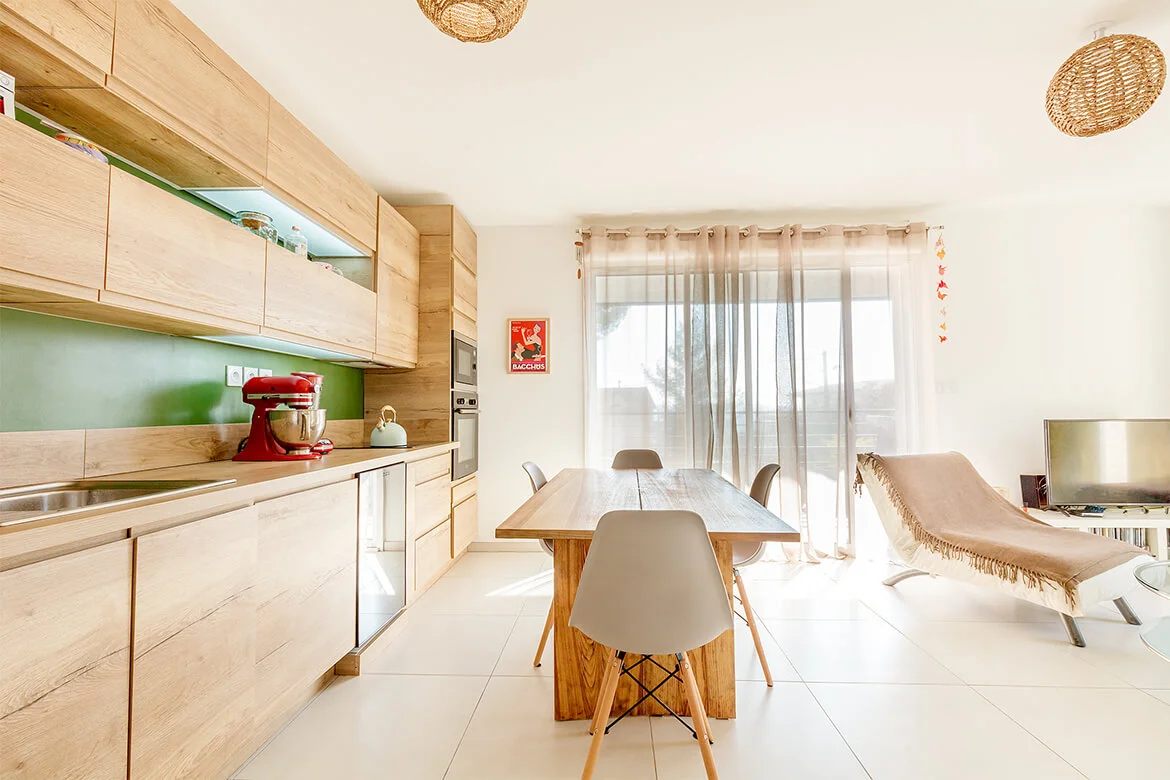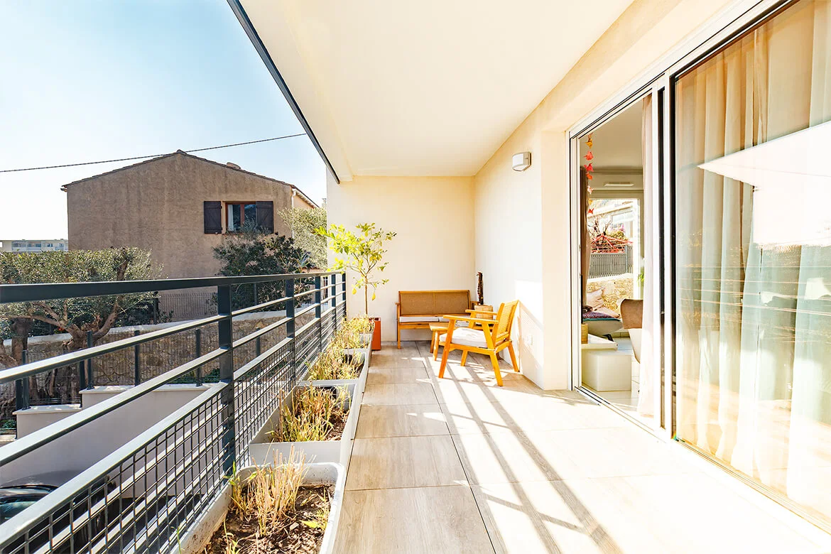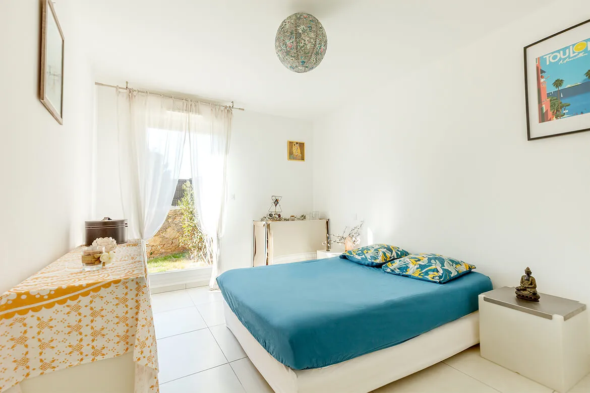 Enjoy the calm of the Lower Faron area. Pleasant apartment located in a new residence. The living room is bright, it has an open kitchen fully equipped, and a lounge area with television and wifi. It gives access to a shaded terrace with garden furniture and to the garden area. You will have a room with a double bed and cupboards, a bathroom with bathtub, practical for the returns of beach. Separate toilet.